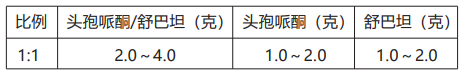 本品每1.0g頭孢哌酮/舒巴坦可按下表進行溶解:
