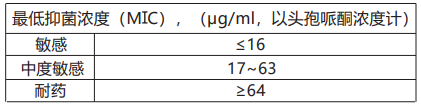 采用肉湯稀釋法或瓊脂稀釋法對1:1或2:1的頭孢哌酮/舒巴坦進行逐步稀釋以獲得其最低抑菌濃度(MIC)。推薦采用含75μg頭孢哌酮和30μg舒巴坦的藥敏紙片。如敏感性試驗報告“敏感”,表明頭孢哌酮/舒巴坦治療感染的病原菌可能有效;如報告“耐藥”,表明頭孢哌酮/舒巴坦治療感染的病原菌可能無效;如報告為“中度敏感”,表明如給予較高劑量或感染局限在有高濃度本品的組織或體液時,病原菌可能對頭孢哌酮/舒巴坦敏感。